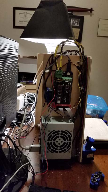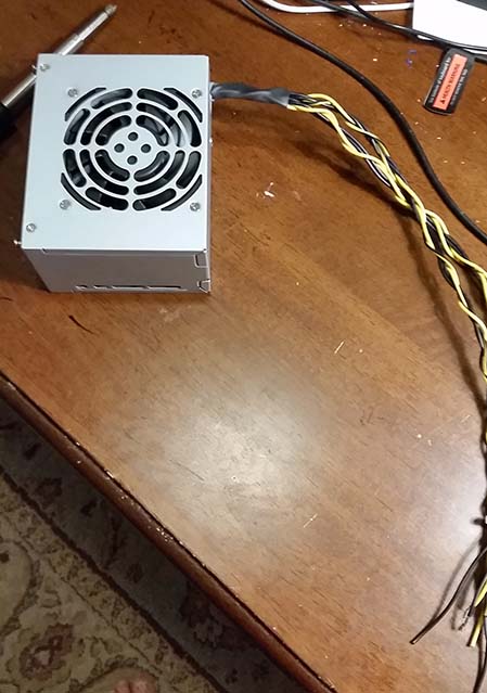 The power supply with excess wires removes and cables braided and heat shrink tubing-ed